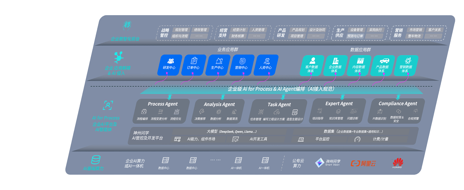 端到端的一站式AI工作空间深度融合了从企业战略规划到日常经营的全流程业务板块,,定向解决车企内部领域多、、、部门多、、、、链条长、、、场景碎片化等难题,,支持车企快速构建以AI为核心的生产力写作体系,,,,实现任务执行与AI能力的无缝集成与交互
